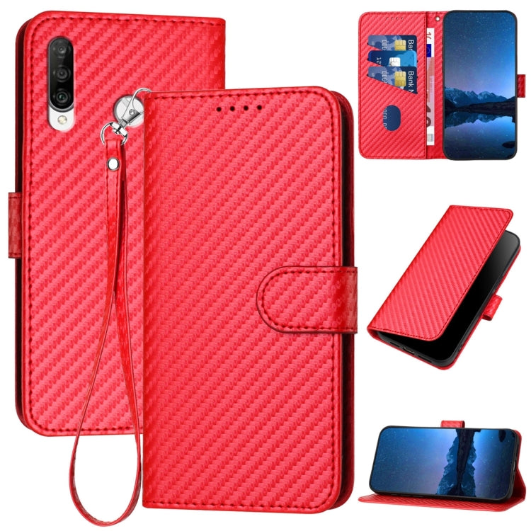 Funda de Cuero para Huawei P30 Lite Nova 4E Yx0070 con Hebilla de Fibra de Carbono y Cordón (Rojo)