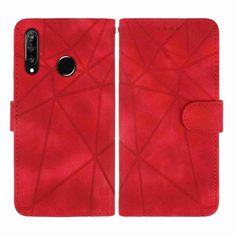 - 1x Funda de Cuero para Huawei P30 Lite con Líneas Geométricas (Rojo)