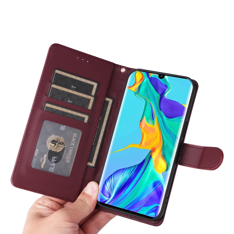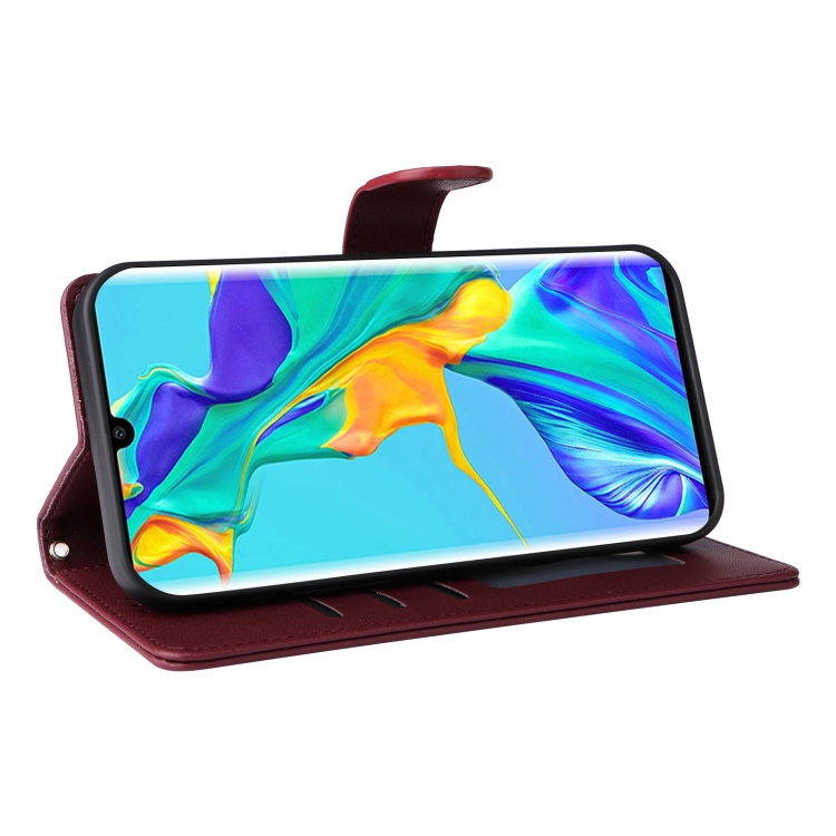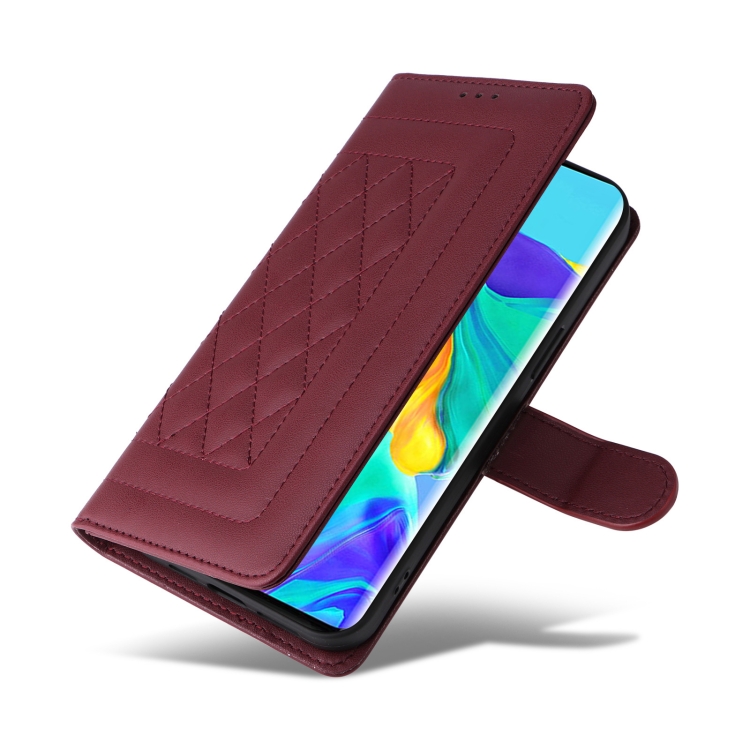Funda de Teléfono Huawei P30 Pro con Tapa de Cuero Diamond Lattice (Rojo Vino)
