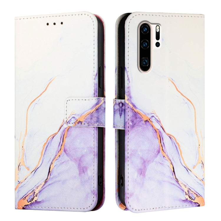 Funda de Cuero con Tapa para Huawei P30 Pro Pt003 con Patrón de Mármol (Ls006 Blanco Púrpura)