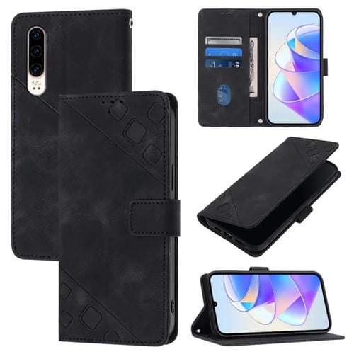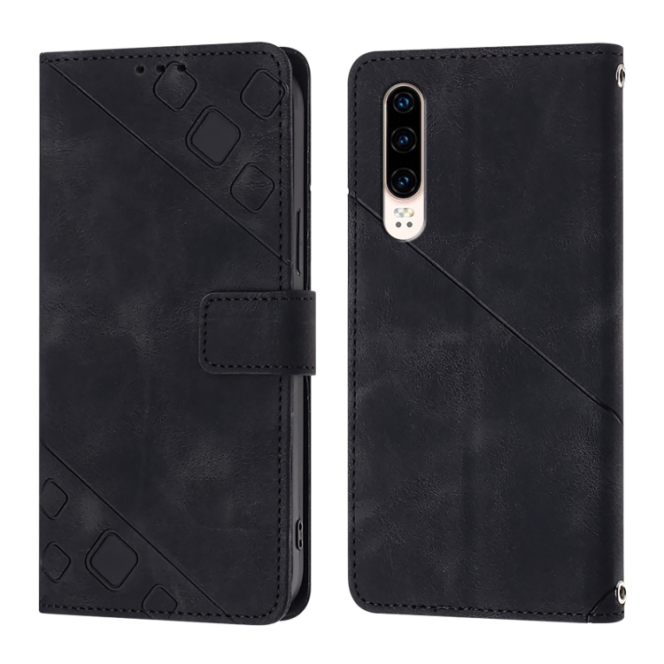 - 1x Funda de Cuero Skin Feel para Huawei P30 en Relieve (Negro)