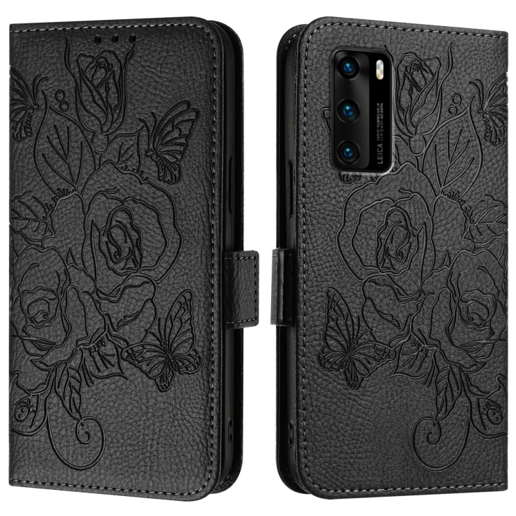 Funda de Cuero Antirrobo RFID para Huawei P40 con Relieve Rosa (Negro)