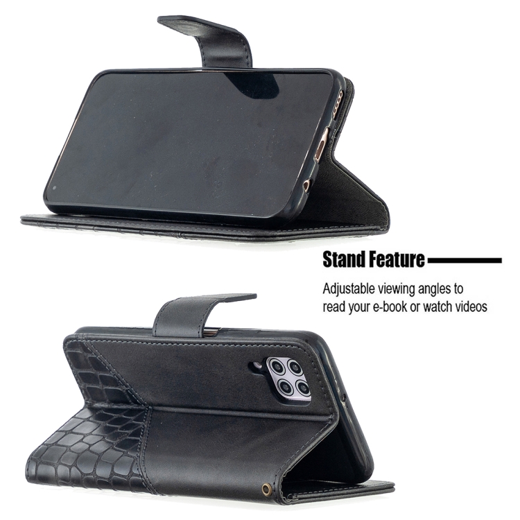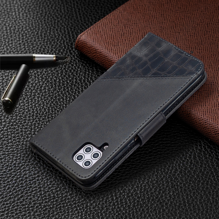 Para Huawei P40 Lite, color a juego, textura de cocodrilo, funda de cuero PU con tapa horizontal con billetera, soporte y ranuras para tarjetas (negro)