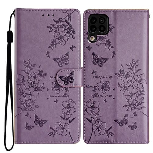 - 1x Funda para Huawei P40 Lite de Cuero con Relieve Flor y Mariposa (Púrpura)