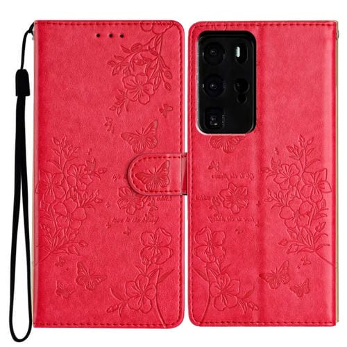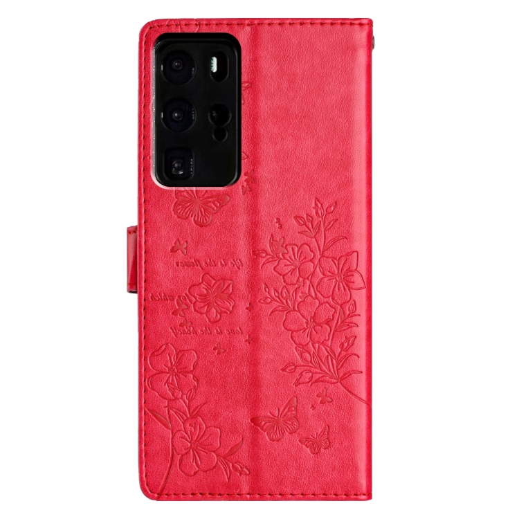 - 1x Funda de Cuero Huawei P40 Pro Butterfly Love Flower en Relieve (Rojo)