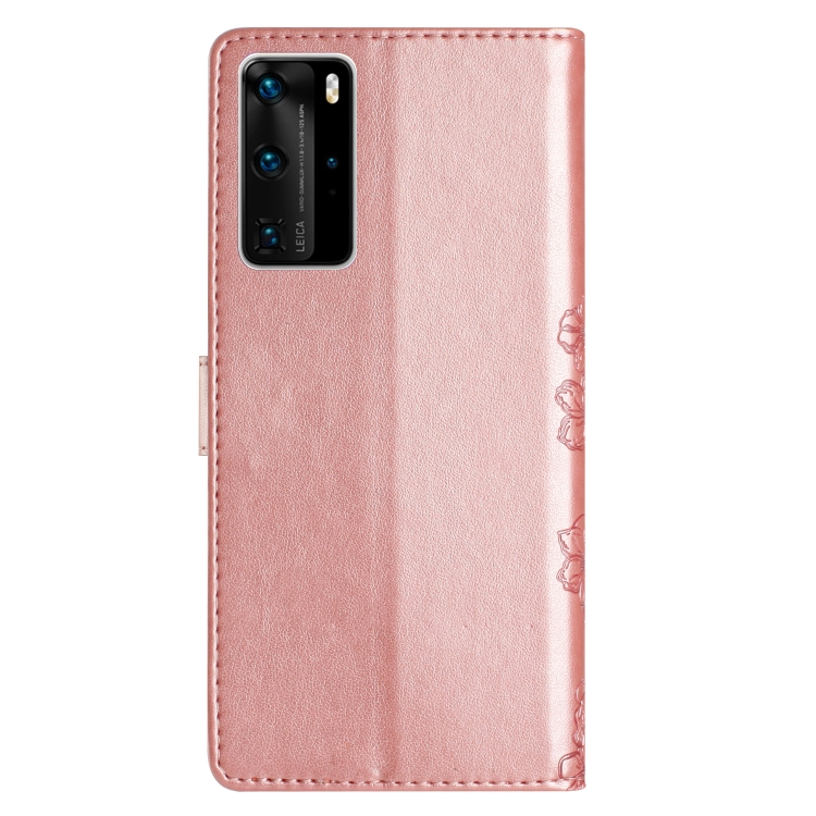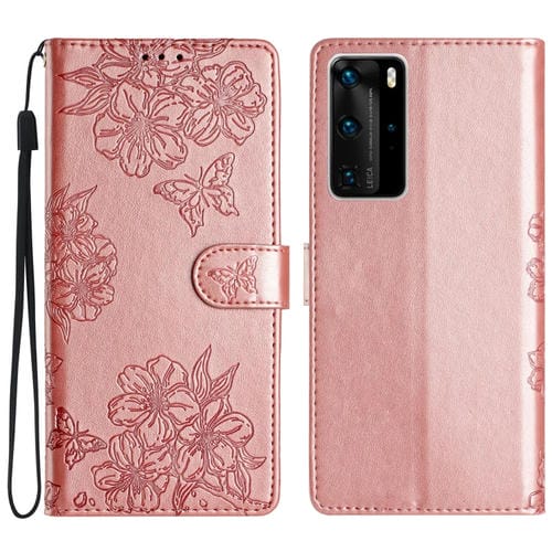 - 1x Funda para Huawei P40 Pro Cherry Blossom Butterfly Skin Feel en PU en relieve (Oro Rosa)