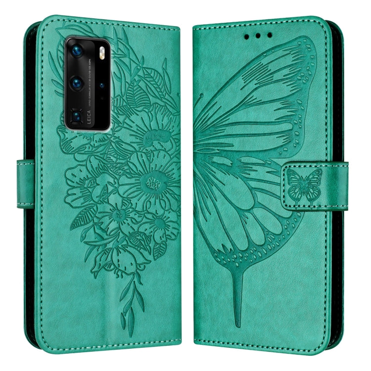 Funda de Cuero para Huawei P40 Pro con Mariposa en Relieve (Verde)