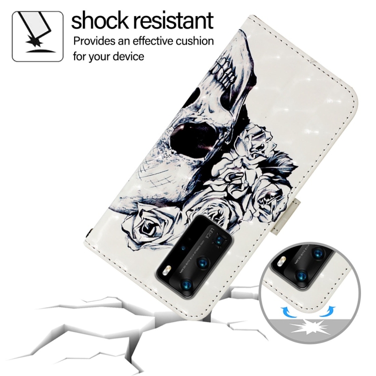 Funda de Cuero para Huawei P40 Pro con Tapa Horizontal y Pintura 3D (Calavera)