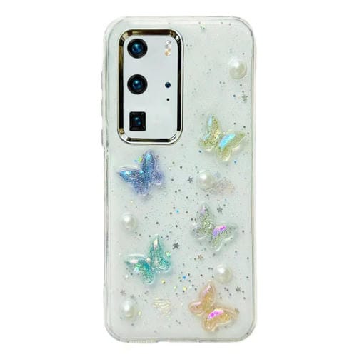 Funda TPU para Huawei P40 Pro con Mariposa de Cristal Colorida 3D (Mariposa Perla)