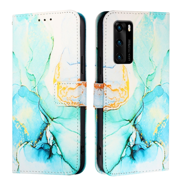 Funda de Cuero para Huawei P40 Pt003 con Tapa y Patrón de Mármol (Verde)