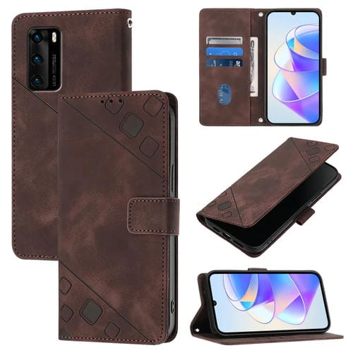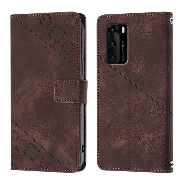 - 1x Funda de Cuero para Huawei P40 Skin Feel Teléfono En Relieve (Marrón)