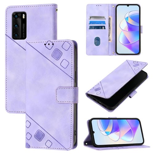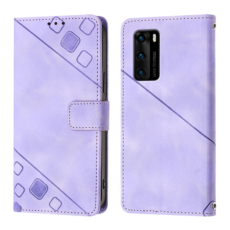 - 1x Funda de Cuero Skin Feel para Huawei P40 en Relieve (Púrpura Claro)