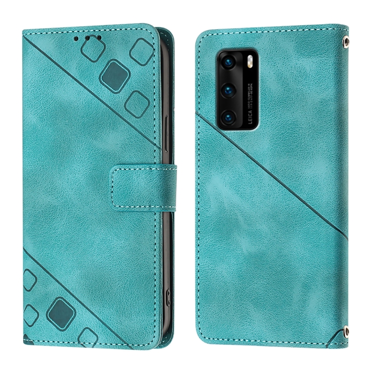 - 1x Funda de Cuero Skin Feel para Huawei P40 con Relieve (Verde)