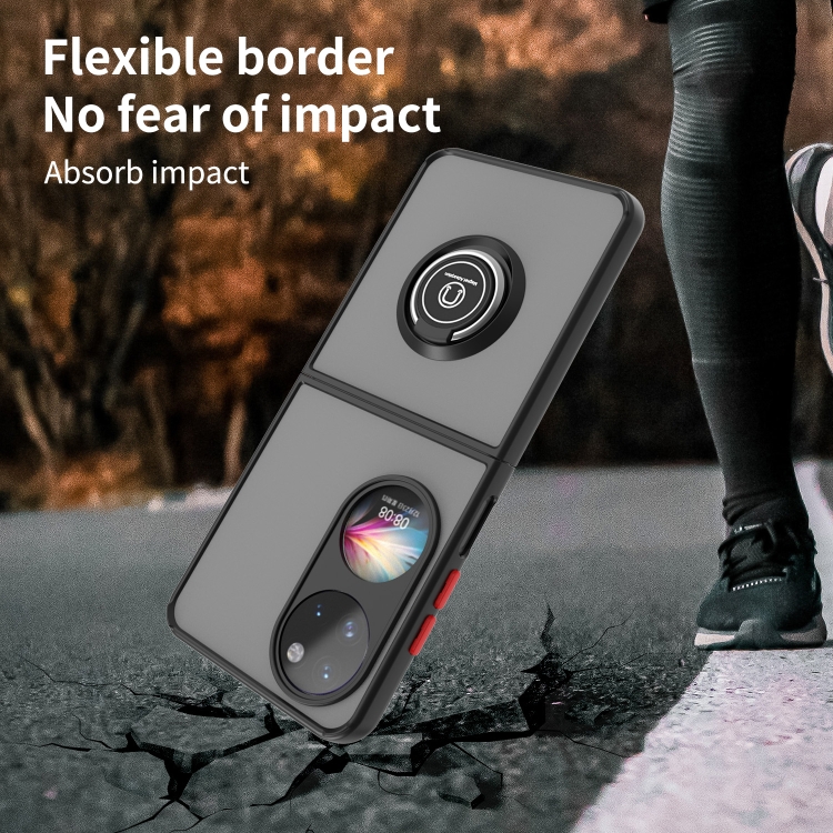 Funda para Huawei P50 Q Shadow I Ring Kickstand PC y TPU Hybrid (Amarillo)