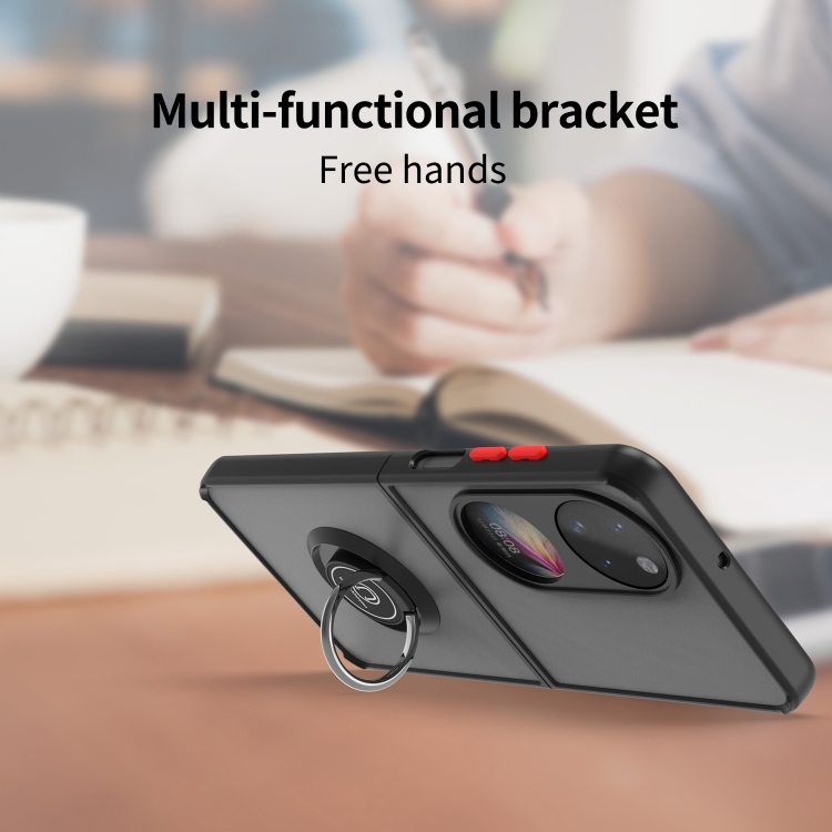 Funda para Huawei P50 Q Shadow I Ring Kickstand PC y TPU Hybrid (Rojo Negro)