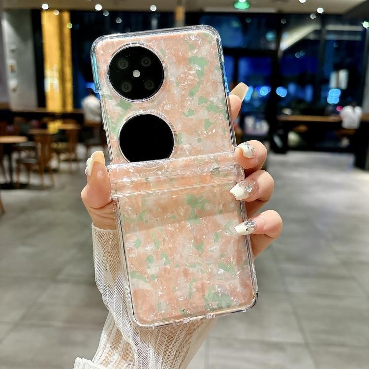 Estuche para Huawei P50 Pocket Juego de Tres Piezas con Textura de Concha Nacarada (Rosa Verde)
