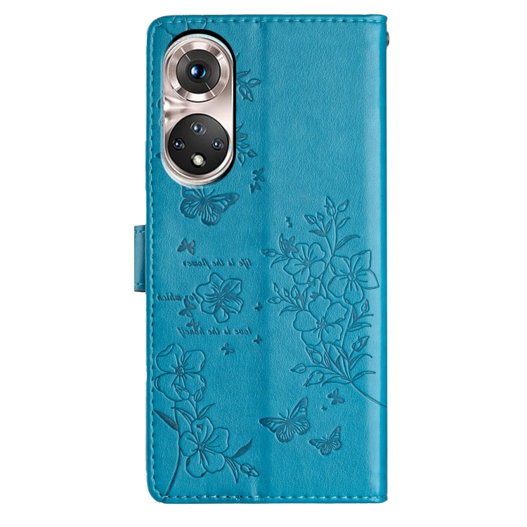 - 1x Funda de Cuero para Huawei P50 Pro Butterfly Love Flower en Relieve (Azul)