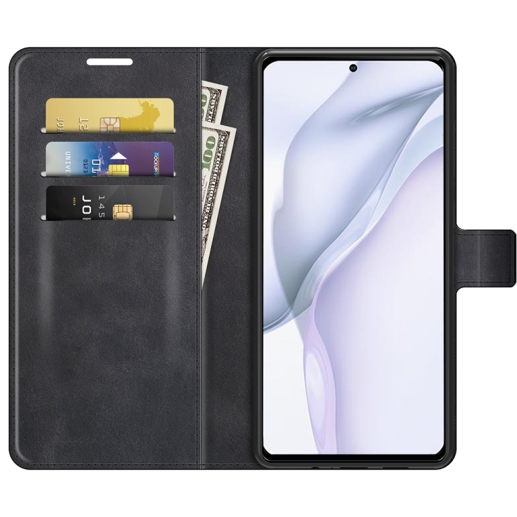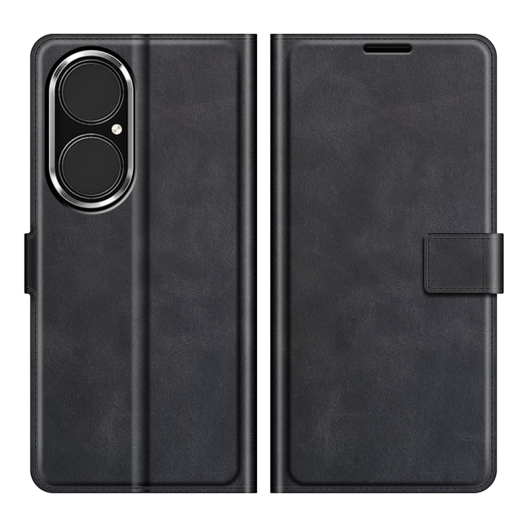 Para Huawei P50 Retro Becerro patrón Hebilla Horizontal Flip Funda de cuero con soporte y tragamonedas y billetera (Negro)