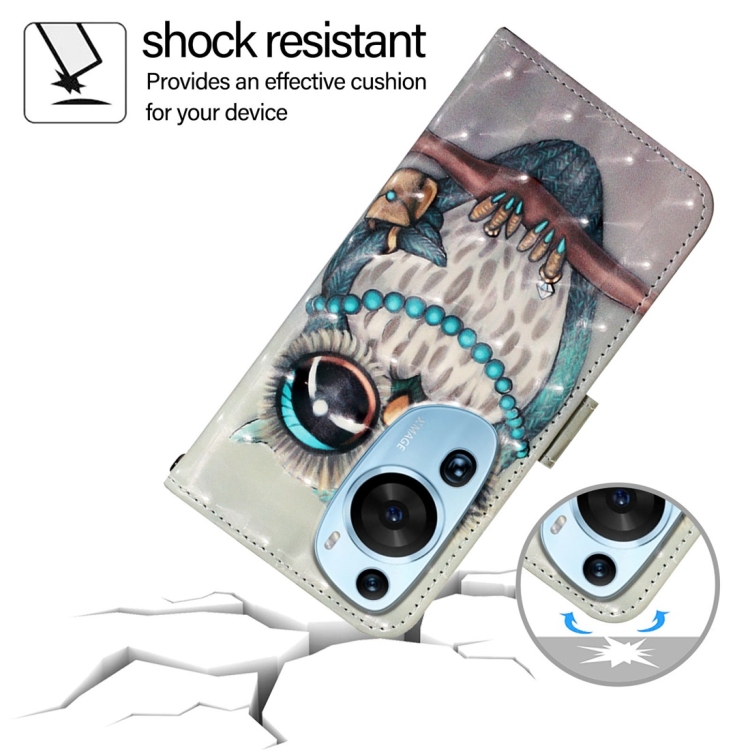- 1x Funda para Huawei P60 Art 3D Painting de Cuero con Tapa horizontal (Búho Gris)