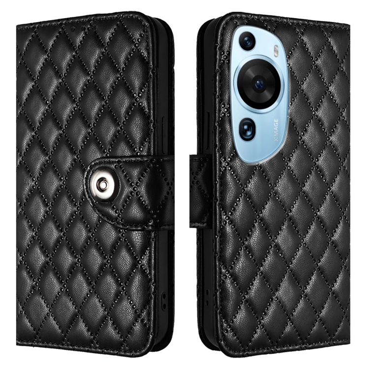 - 1x Funda de Cuero con Tapa y Cordón para Huawei P60 Art Rhombic Texture (Negro)