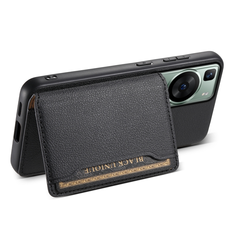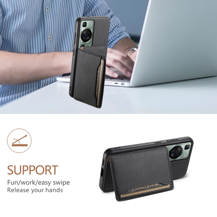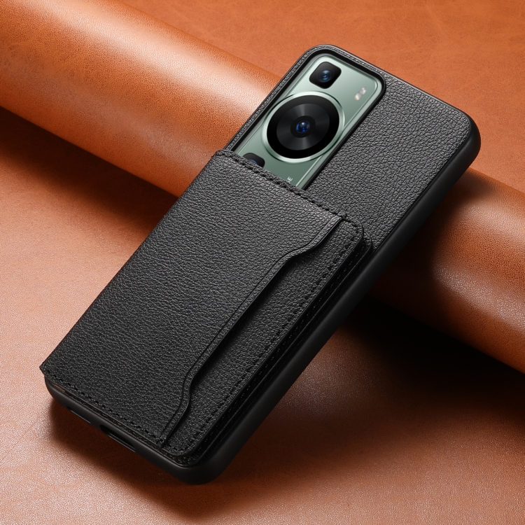 Funda para Huawei P60 con Diseño Bolsa de Tarjeta y Textura de Pantorrilla (Negro)