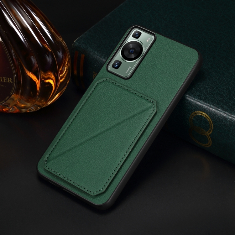 Funda para Huawei P60 / P60 Pro D04 con Ranura para Tarjeta Dual y Textura de Pantorrilla (Verde)