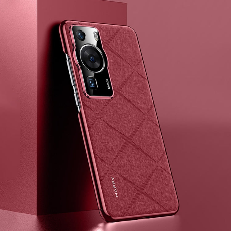 Funda de Cuero Liso para Huawei P60 / P60 Pro para Teléfono PC (Rojo Vino)