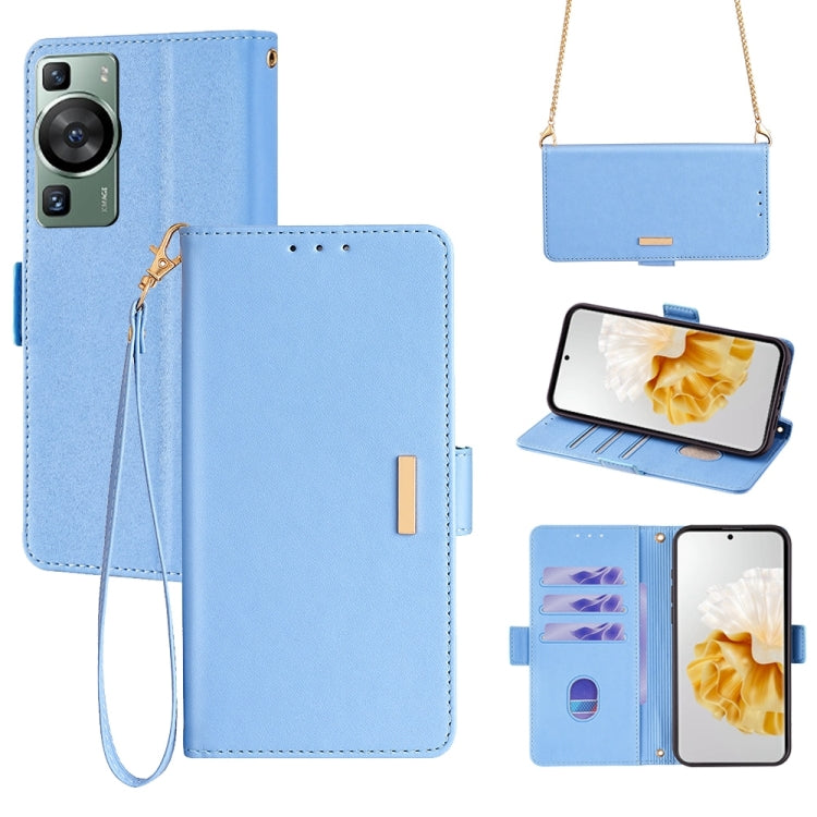 Funda de Cuero para Huawei P60 / P60 Pro con Cadena Cruzada (Azul)