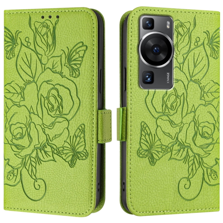 Funda de Cuero Antirrobo RFID para Huawei P60 y P60 Pro con Relieve Rosa (Verde)