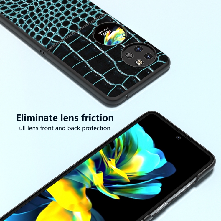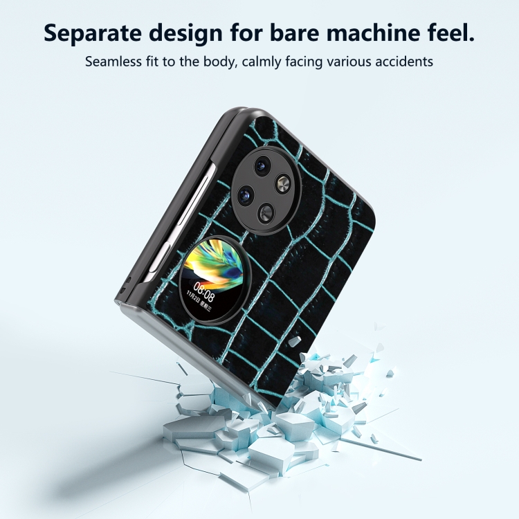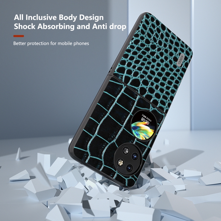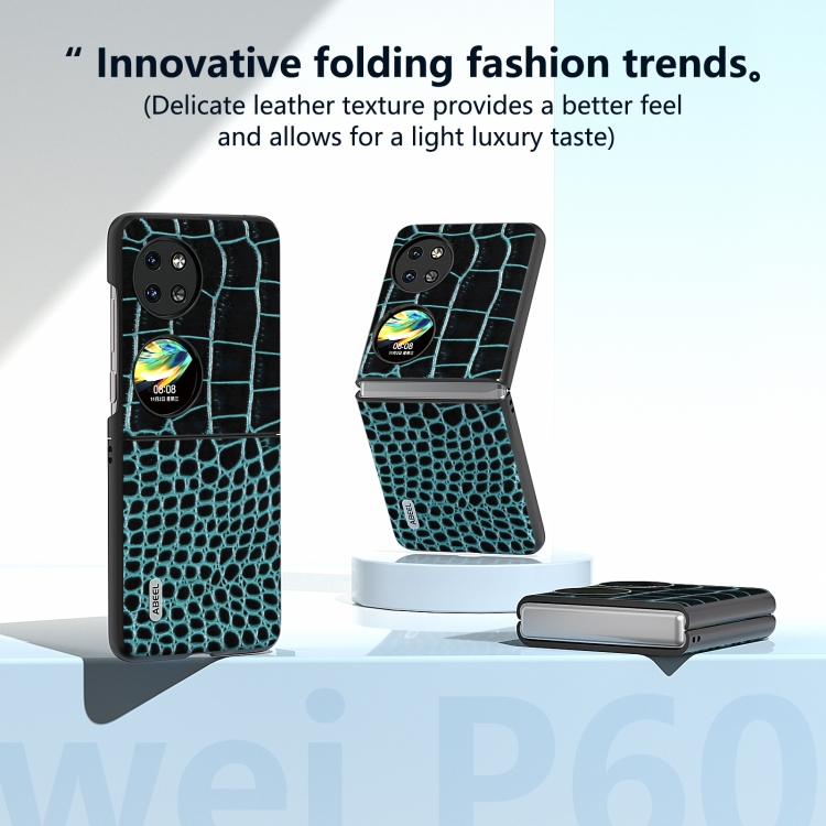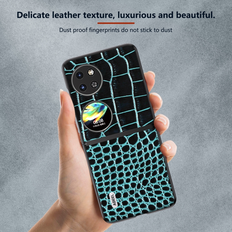 Funda para Huawei P60 Pocket Abeel Cuero Genuino Patrón Cocodrilo Borde Negro (Azul)