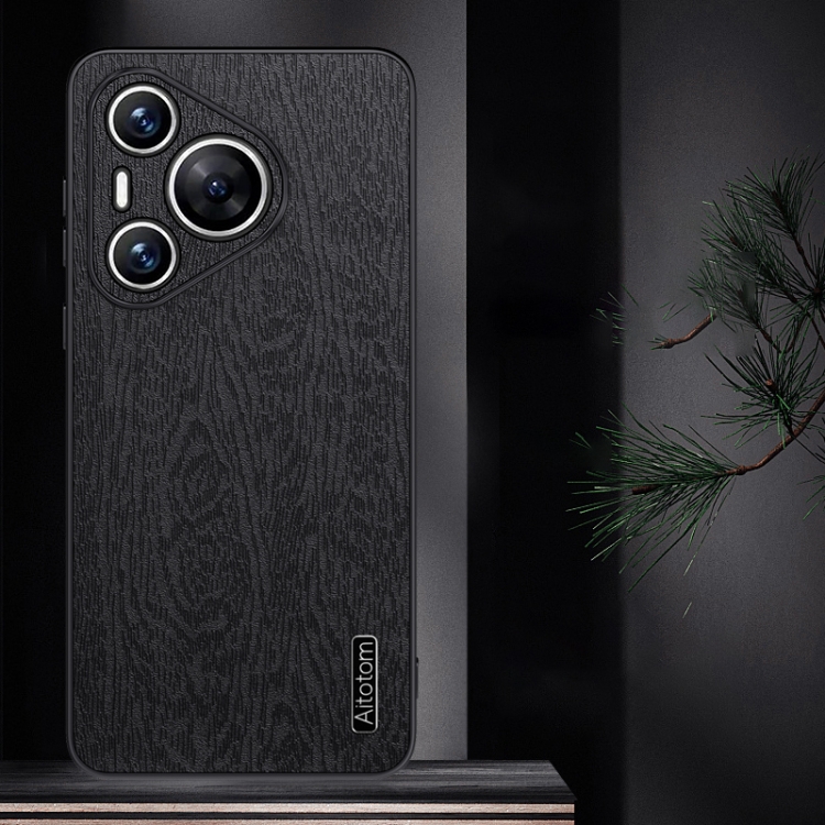 Funda para Huawei P70 de Cuero con Corteza de Árbol a Prueba de Golpes (Gris)