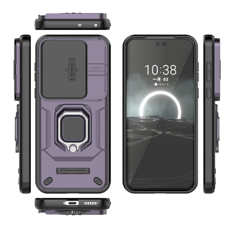 Funda para Huawei P70 Pro 5G Sliding Camshield TPU + PC a Prueba de Golpes con Soporte (Púrpura)