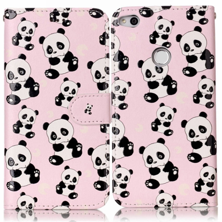 Funda de Cuero para Huawei P8 Lite (2017) con Tapa Horizontal, Patrón Panda en Relieve, Soporte, Ranuras para Tarjetas y Billetera