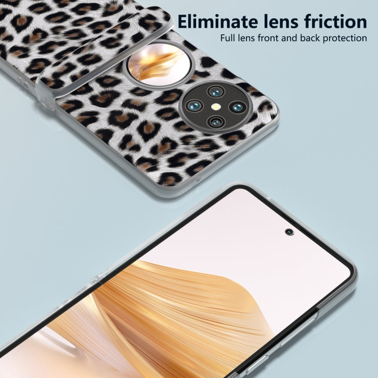 Estuche para Huawei Pocket 2 con Patrón Leopardo y Marco Transparente Esmerilado de Tres Partes (Leopardo Plateado)