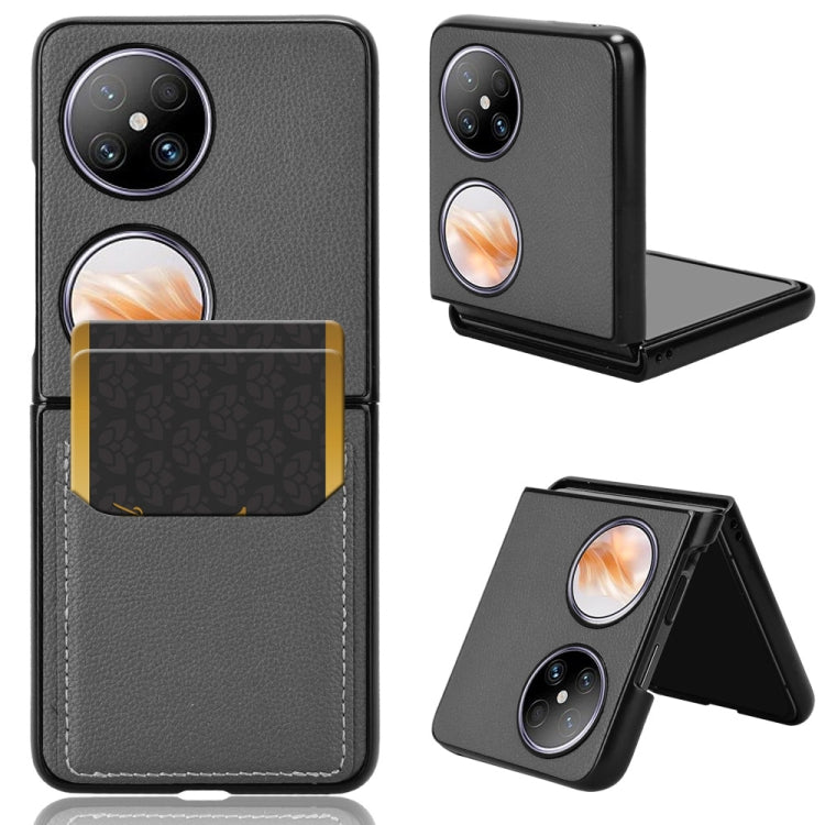 Funda para Huawei Pocket 2 con Cubierta Trasera y Ranuras para Tarjetas Textura Litchi (Gris)