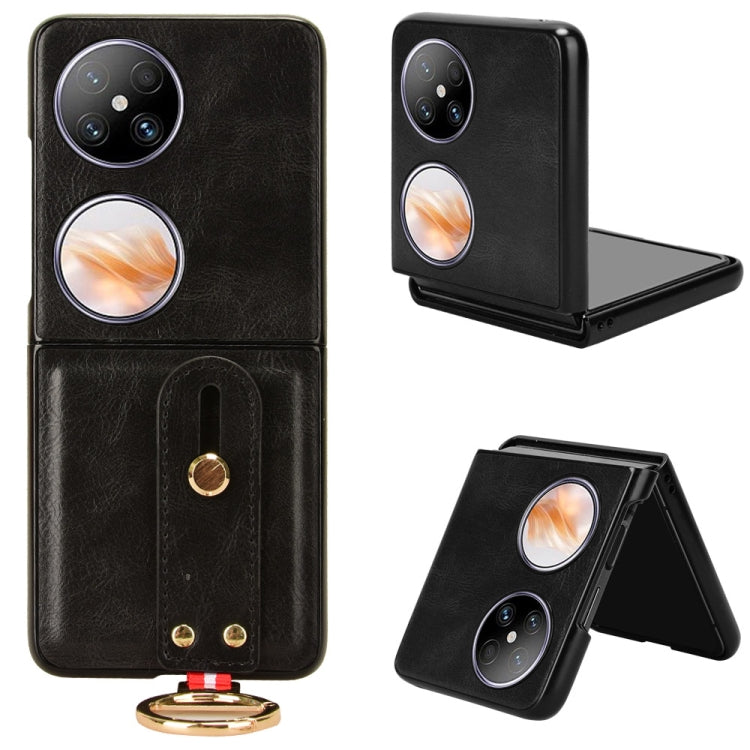 Funda Trasera de Cuero para Huawei Pocket 2 con Pulsera (Negro)