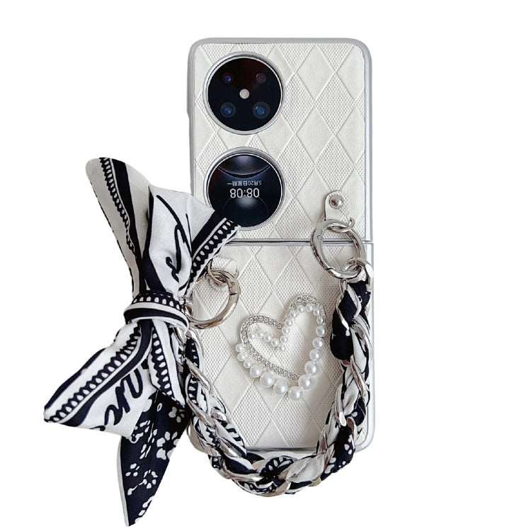 Funda para Huawei Pocket 2 con Textura de Cuero Rombo y Pulsera en Forma de Corazón a Prueba de Golpes (Blanco)