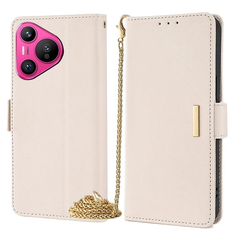 Funda de Cuero para Huawei Pura 70 5G con Cadena Cruzada (Blanco)