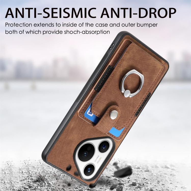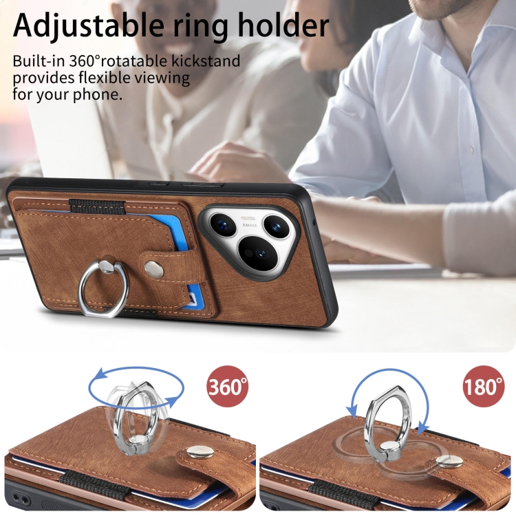 Funda para Huawei Pura 70 con Billetera, Tarjeta y Anillo con Sensación de Piel Retro (Marrón)