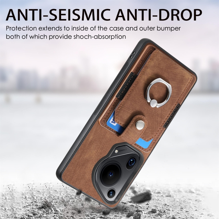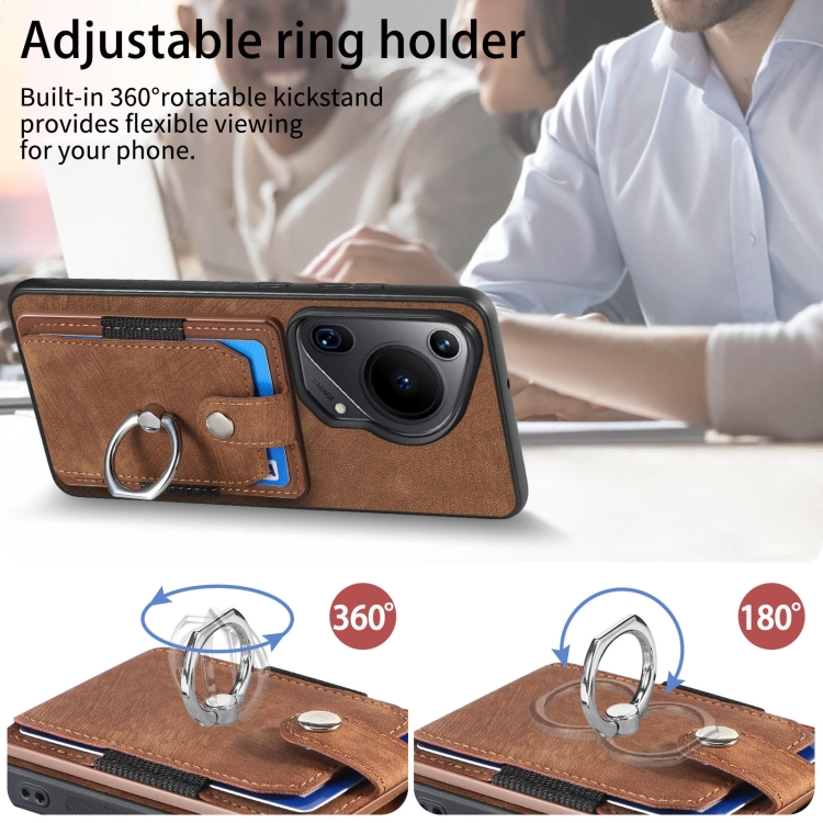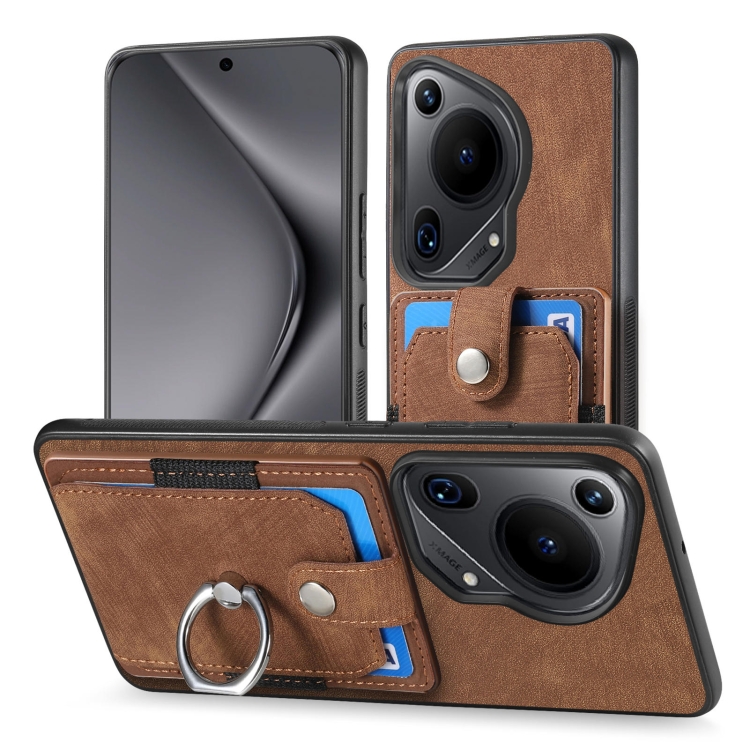 - 1x Funda para Huawei Pura 70 con billetera, Tarjeta y anillo con sensación de piel (Marrón)