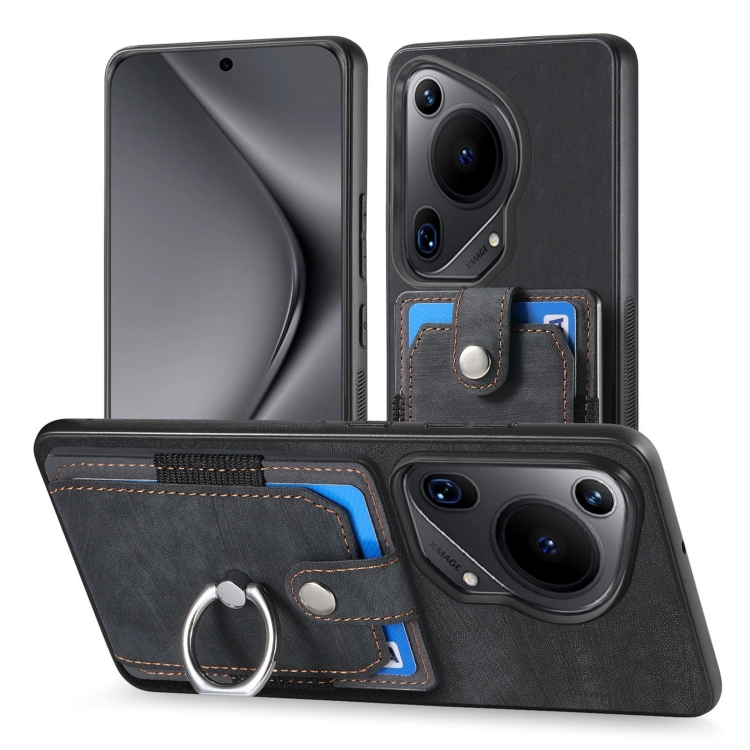 Funda para Huawei Pura 70 con Billetera, Tarjeta y Anillo con Sensación de Piel Ultra Retro (Negro)