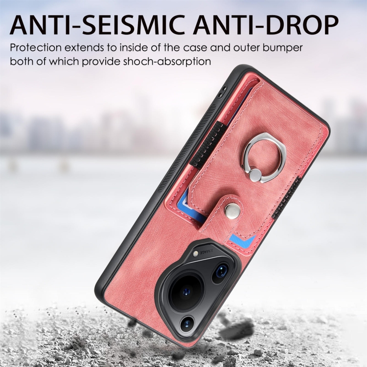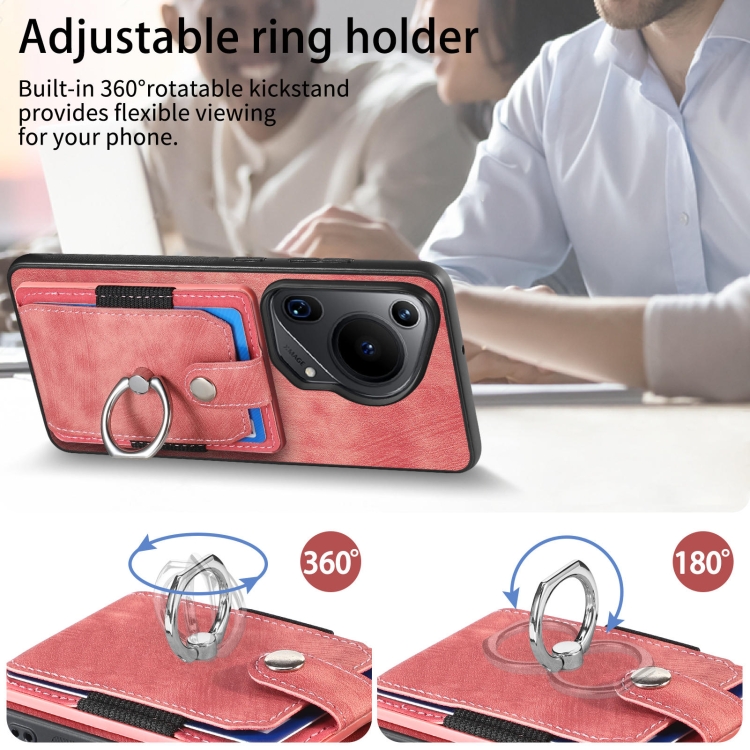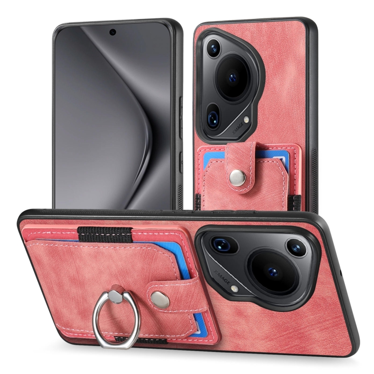 Funda para Huawei Pura 70 con Billetera, Tarjeta y Anillo, Sensación de Piel Ultra Retro (Rosa)
