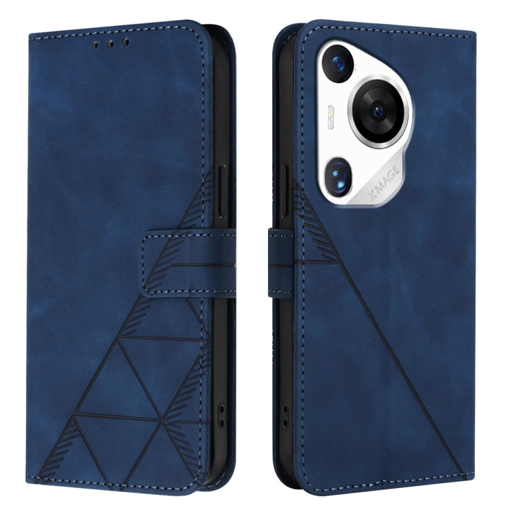 Funda para Huawei Pura 70 Pro Crossbody de Cuero con Tapa en Relieve 3D (Azul)