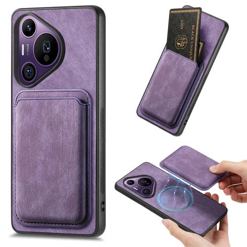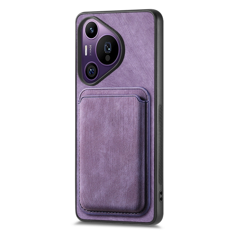 - 1x Funda de Teléfono Magnética Huawei Pura 70 Pro con Bolsa de Tarjeta de Cuero Retro (Púrpura)