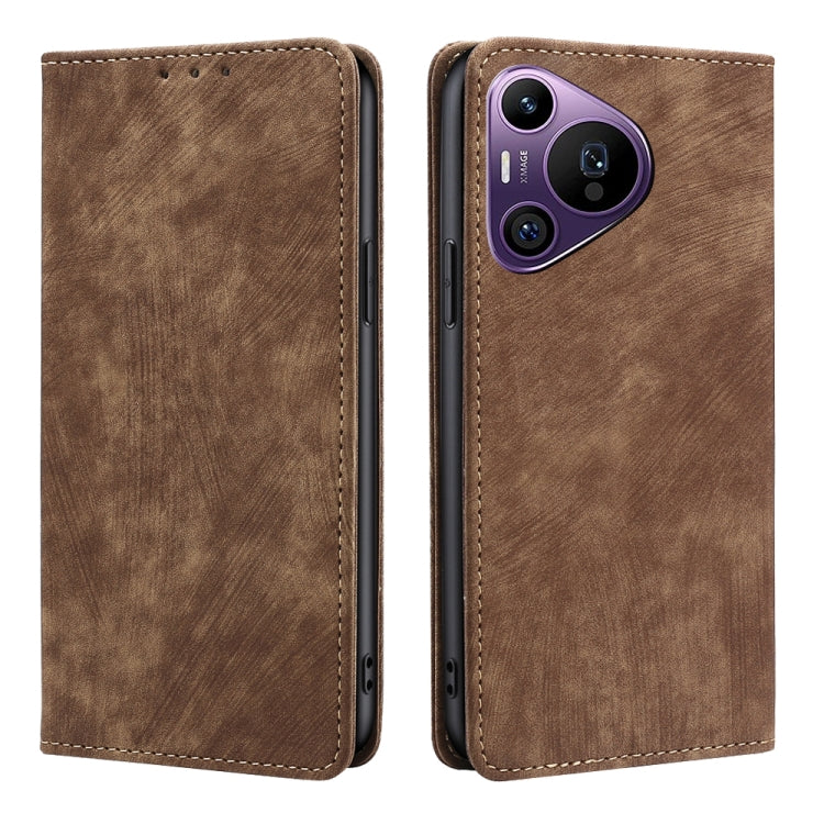 Estuche para Huawei Pura 70 Pro y Pro+ de Cuero Magnético con Cepillo Antirrobo Rfid (Marrón)