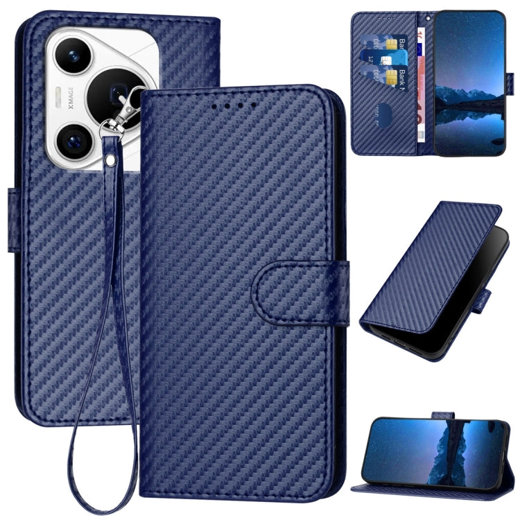 Funda de Cuero para Huawei Pura 70 Pro y Pura 70 Ultra Yx0070 con Hebilla de Fibra de Carbono y Cordón (Azul Real)
