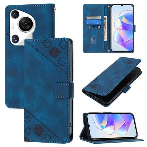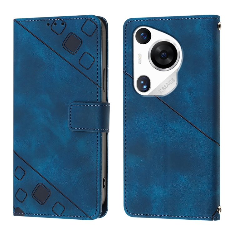 Funda de Cuero Huawei Pura 70 Pro Skin Feel En Relieve (Azul)