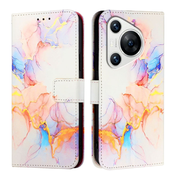 Funda de Cuero con Tapa para Huawei Pura 70 Pt003 con Patrón Mármol (Blanco)