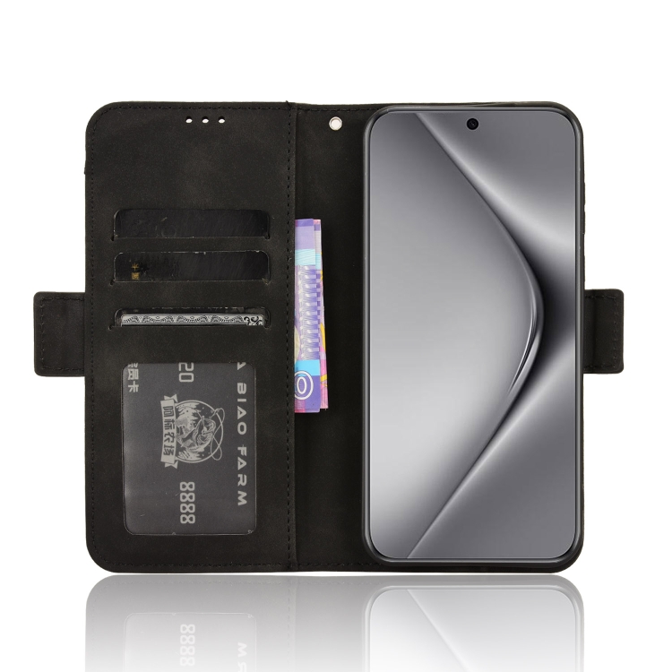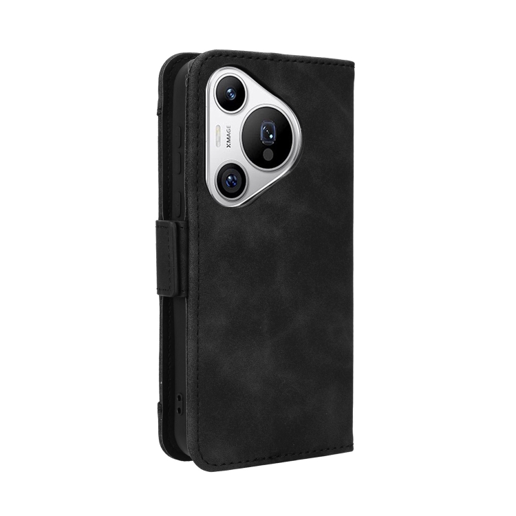 Funda de Cuero para Huawei Pura 70 con Textura Becerro y Ranuras para Tarjetas (Negro)