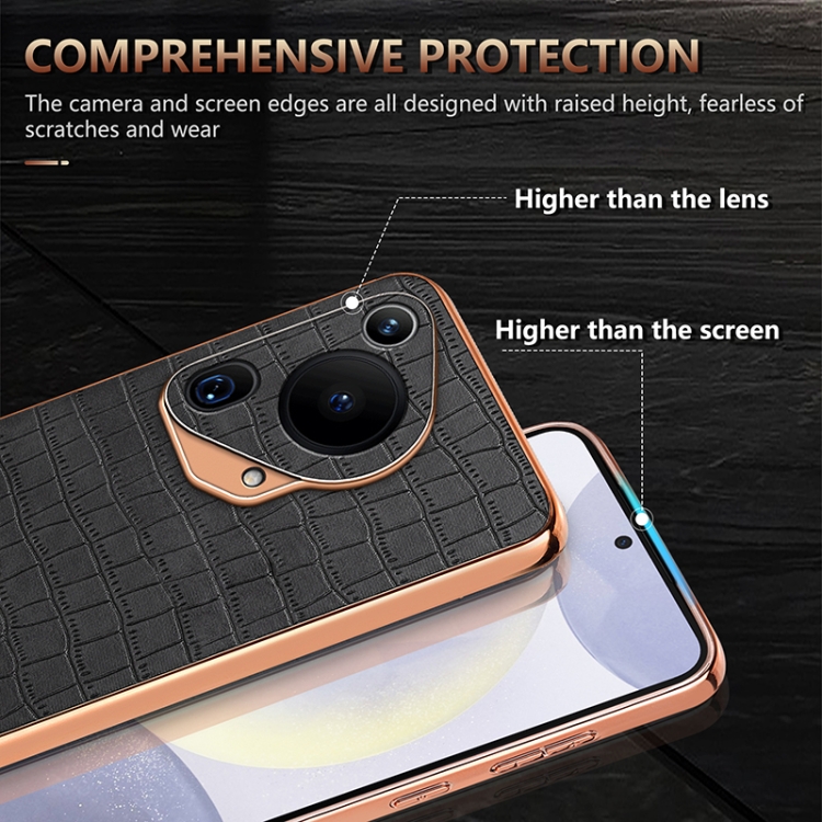 • 1x Estuche para Huawei Pura 70 Ultra Azns con Textura de Cocodrilo y Marco Galvanizado (Azul)